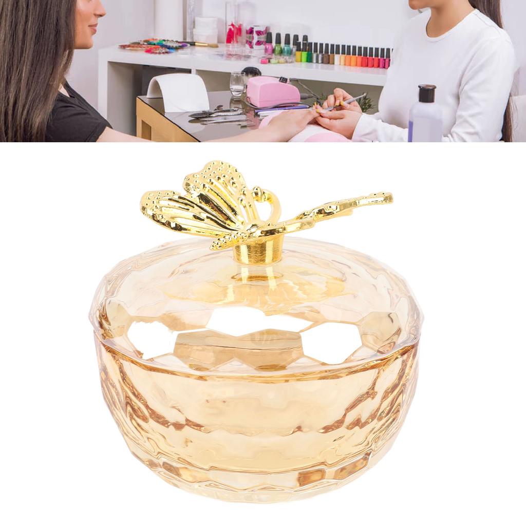 Nail Art Cup Large Capacity Multifunctional Dappen Dish Cup Transparent Glass Nail Art Dappen Dish with Alloy Lid for Liquid Jewelry Display
