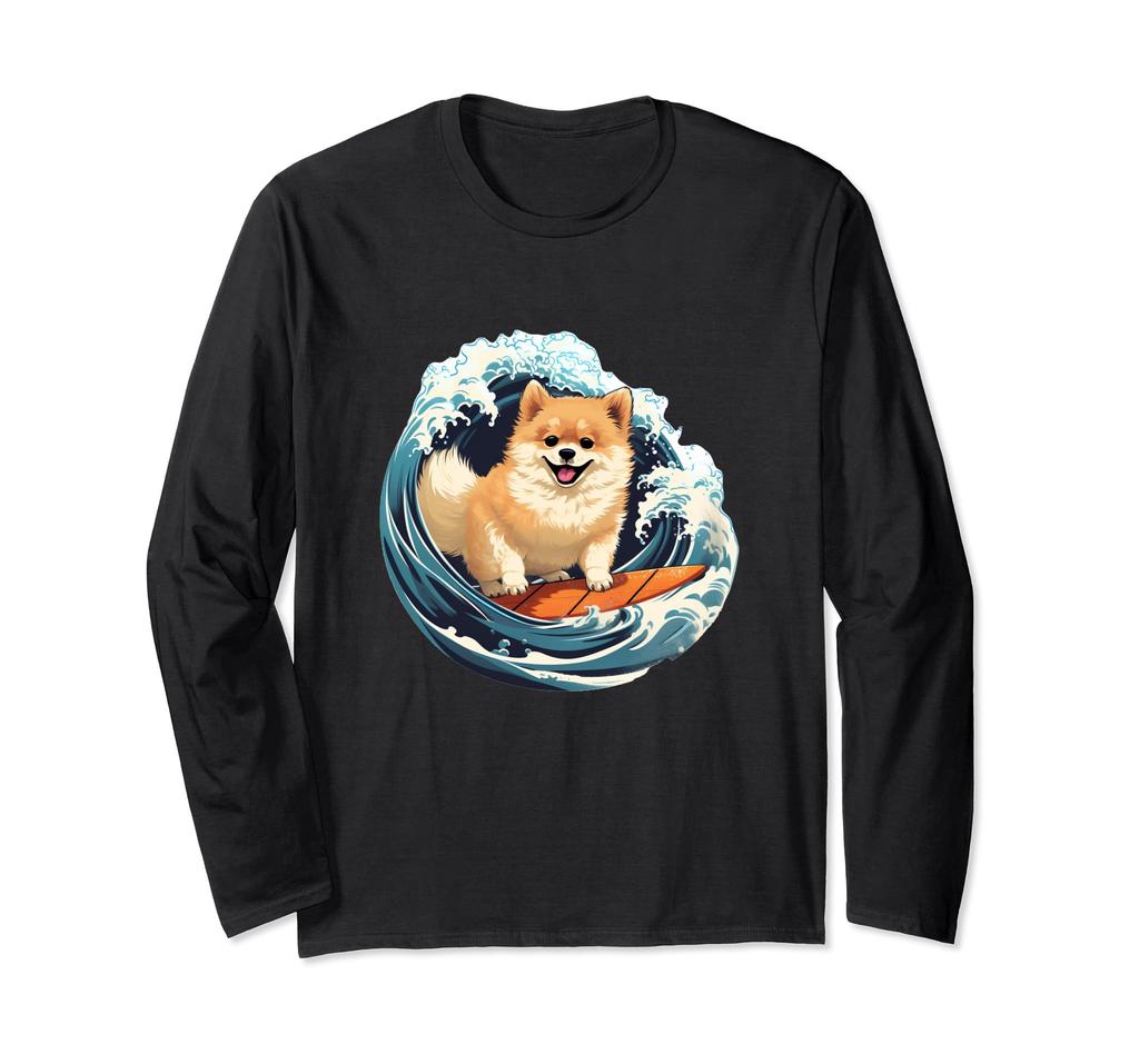 Pomeranian Funny Dog Surfing Summer Cute Kids Funny Clothes Goods Jokes Present Long Sleeve T-shirt Men's T-shirt