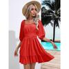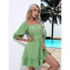 Summer Women's Dress Ruffle Square Neck Solid Color Dress Sweet and Fresh Tie Short Dress