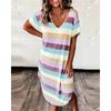 Summer Women's Loose Stripe Printed Short Sleeve Dress Long Dress