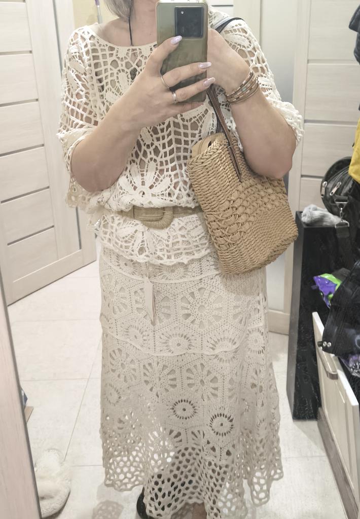High-Waist French Lace A-line Midi Skirt with Crochet Detail