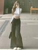 Women's Retro High Waist Wide Leg Black Jeans - Summer Loose, Slimming, Drapey, Frayed Hem, Floor Length.