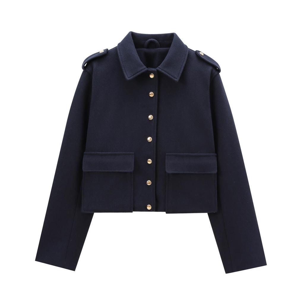 This elegant autumn jacket is designed with a sophisticated navy-style aesthetic, featuring striking gold buttons that add a touch of luxury. Crafted from high-quality polyester, the jacket offers a comfortable and durable wear, making it perfect for transitional weather. Its high-waisted design accentuates the silhouette, while the medium outerwear thickness provides just the right amount of warmth. The turn-down collar and solid pattern give it a classic look, and the long sleeves add to its chic appeal. Ideal for fashion-forward women, this jacket combines style and practicality seamlessly.