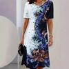 Amazon European and American Standard Size New Summer Printed Round Neck Pullover Lady A-line Short Sleeve Dress Popular In Europe