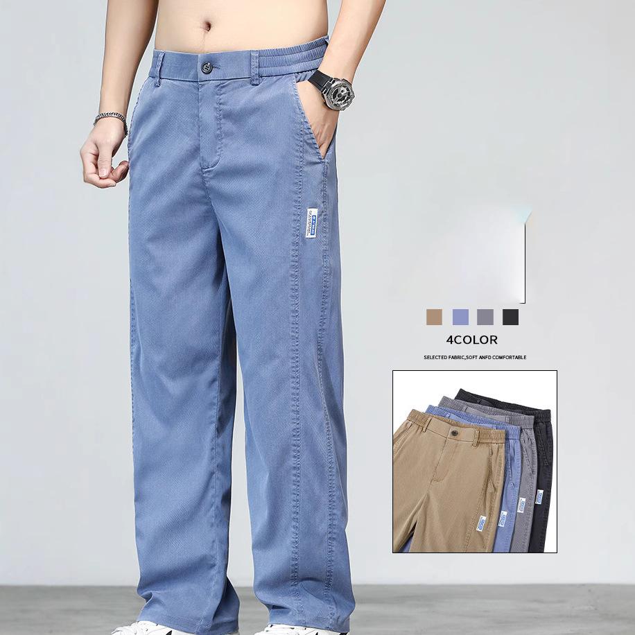 Summer Ultrathin Soft Lyocell Fabric Men's Jeans Loose Straight Denim Pants Design Casual Trousers Plus Size 5XL