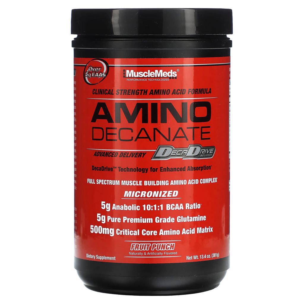 Product Description: 5g+ EAAs Performance Technology Clinical Strength Amino Acid Formula Enhanced Potency - DecaDrive Delivery DecaDrive Technology for Enhanced Absorption Full Spectrum Muscle Building Amino Acid Complex Dietary Supplement Natural and Artificial Flavors Micronized Anabolic 10:1:1 Ratio 5g BCAAs 5g Pure Premium Glutamine 500mg Essential Core Amino Acids Amino Decanate Amino Decanate’s advanced amino acid complex with DecaDrive Technology sets a new standard for amino acid supplementation. Recent research has shown that branched chain amino acids (BCAAs), glutamine, and other essential amino acids are essential for maximum muscle growth, recovery, and performance. During exercise, you need more amino acids to fuel your workouts. Deficiencies in certain amino acids can result in impaired muscle growth and performance. These deficiencies are known as rate-limiting amino acid deficiencies. Amino Decanate is a superior anabolic formula containing 19 high-potency essential amino acids in a precise 10.5g dosage to maximize anabolic muscle building, prevent catabolic muscle loss, and support the citric acid cycle and alanine glucose cycle to increase energy and muscle endurance. Each serving of Amino Decanate provides 5g of the BCAA with a 10:1:1 ratio of anabolic Leucine, which has 10x the leucine content of isoleucine and valine. Recent research has shown that Leucine is a key anabolic peptide for synthetic proteins for maximum muscle building. Amino Decanate also contains a 5g dosage of pure premium L-Glutamine to support muscle growth and accelerate recovery by providing a healthy anabolic/anti-catabolic environment. Contains 500mg of essential core amino acids (CCAA) per serving to help overcome speed-limiting amino acid deficiencies, supporting the citric acid cycle and alanine glucose cycle, and providing nutrients to muscle tissue. Accelerate Anabolism with DecaDrive Amino Decanate delivers micronized anabolic amino acids via cutting-edge DecaDrive technology to help facilitate rapid and effective absorption and utilization of these essential muscle-building amino acids. DecaDrive technology uses an advanced delivery system utilizing complexed PEG and Decanoate to enhance intestinal amino acid absorption. Powerful Amino Decanate provides maximum anabolic muscle building, anti-catabolic muscle protection, and supports energy production and recovery. Amino Decanate is the new standard in muscle development in amino acid supplementation.