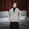Vintage Chinese Tie-Dye Winter Cotton Coat with Buttons and Ramie Quilting