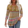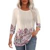 Women's Fashionable Casual Pleated Round Neck Casual Floral Print Seven Quarter Sleeved T-shirt Top