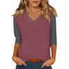 Women's Casual Fashion Sexy Comfortable V-neck Stitching Color Three-quarter Sleeve Top