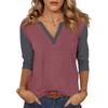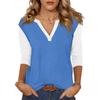 Women's Casual Fashion Sexy Comfortable V-neck Stitching Color Three-quarter Sleeve Top