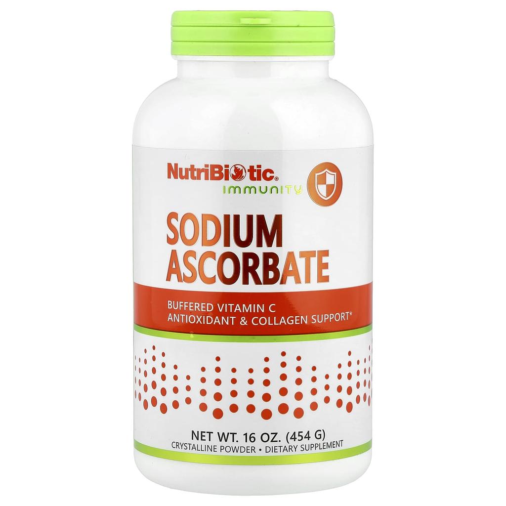 Product Description: Buffered Vitamin C Antioxidant & Collagen Booster Dietary Supplement Vegan pH 7.1‡Made with Non-GMO IngredientsGluten FreeNot Tested on AnimalsNaturally Fresh Nitro®Pak Sterile EnvironmentHighly Soluble NutriBiotic® Sodium Ascorbate is a non-bitter, non-acidic, fully reacted buffered crystalline powder blended with 100% pharmaceutical grade high-soluble vitamin C (L-ascorbic acid) and sodium. Vitamin C and sodium are essential nutrients for the body. Vitamin C provides antioxidant protection to the immune system, as well as supporting the health of blood vessels, tissues, cartilage, bones, eyes, and other organ systems. Vitamin C is also required for the biosynthesis of collagen, L-carnitine, and neurotransmitters. Sodium is an electrolyte that helps maintain water balance inside and outside cells, maintain stable blood pressure, and is important for muscle and nerve function. The positive effects of vitamin C and sodium are essential for the overall health of the body. Each serving contains 1,100 mg of Vitamin C and 120 mg of Sodium. NutriBiotic Sodium Ascorbate is made by dissolving ascorbic acid with sodium bicarbonate, which is mined from the earth. The sodium in this product is not combined with chloride, making it different from regular table salt. NutriBiotc Sodium Ascorbate is ideal for those who need a buffered, alkaline form of Vitamin C. ‡Acidity/Alkalinity Measurement (neutral pH 7.0)