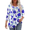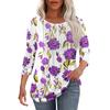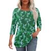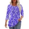 Women's Fashionable Casual Pleated Round Neck Casual Floral Print Seven Quarter Sleeved T-shirt Top