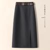 Experience timeless elegance with this exquisite wool A-line midi skirt, designed to seamlessly enhance your autumn and winter wardrobe. Crafted from high-quality wool, this solid-patterned skirt offers unparalleled warmth and comfort, making it a perfect choice for the colder months. The sportive style infuses a modern twist into the classic design, while the hip wrap and subtle slit add a touch of sophistication and freedom of movement. Perfect for both casual outings and refined gatherings, this garment effortlessly combines style and functionality.