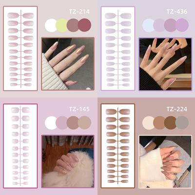 24 Pcs French Tip Press On Nail Short Oval False Nail Silver Stripes Acrylic Nail Gradient Full Cover Stick On Nail