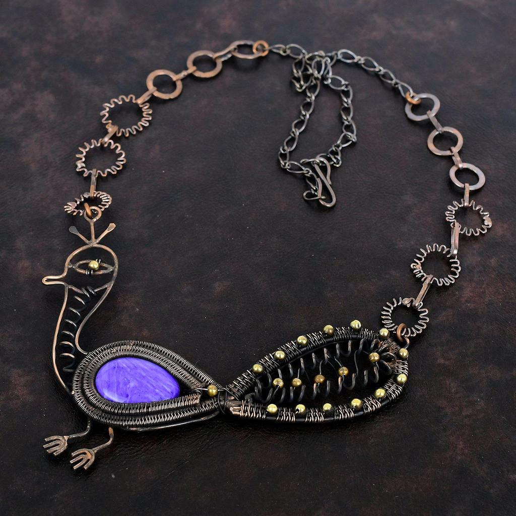Charoite Necklace Copper Wire Wrapped Gemstone Necklace Adjustable Chain Necklace Peacock Necklace Handmade Necklace For Gift Copper Jewelry