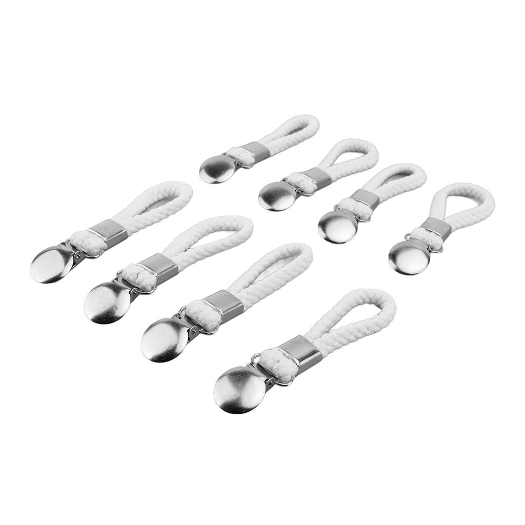 1. Set of 8 Towel Clips: You will receive 8 pieces of tea towel holders in white color. Can be used indoors and outdoors, suitable for kitchen, bathroom, vacation, beach, and camping.