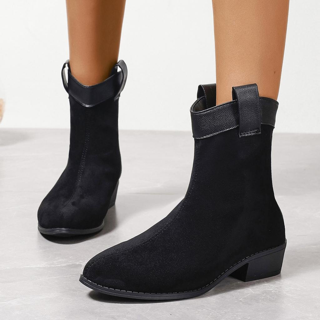 Large Size Soft Fur Vintage Western Cowboy Boots Women's Coarse Heel Short Boots Autumn and Winter Frosted Pointed Chelsea Boots