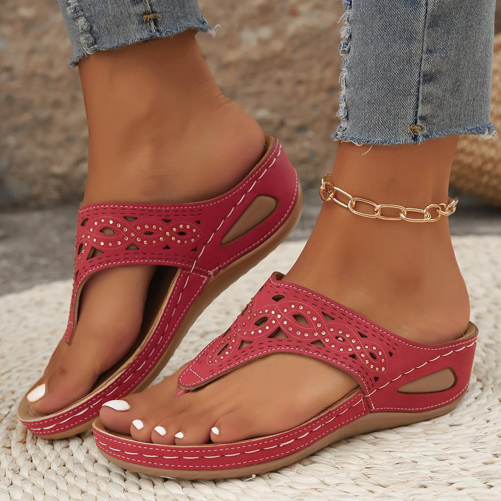 New Sandals Large Size Hollow Rhinestone Thick Bottom Toe Cool Slippers Women