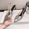 Rhinestone Pointed Sandals Spring New Bag Head Thin Heel Dress Versatile High Heels Women