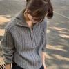 Indulge in the luxurious comfort of this elegant cable knit cashmere pullover, designed for the autumn and winter seasons. Featuring a sophisticated half-zip closure and a chic turn-down collar, this sweater effortlessly combines style and warmth. Crafted from high-quality wool material, its plush texture ensures superior coziness. The tailored neckline and half-length sleeves add a touch of modernity, making it a versatile addition to any wardrobe. Perfect for layering or as a standalone statement piece, this pullover is a must-have for those chilly days.