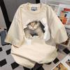 This women's T-shirt offers a blend of comfort and style, perfect for summer. Made from 100% cotton, it ensures a soft and breathable wear. The loose casual fit provides a slimming effect, while the short sleeves and crew neck design add to its relaxed feel. The standout feature is the playful cat print, adding a fun and whimsical touch to your outfit.