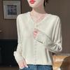 Sheer Sleeve V-Neck Knitwear: Spring/Summer Hollowed-Out Women’s Versatile Base for Elegant Mom Style