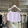 Dongdaemun Women's 2024 French Girlish Pink Lace-Trim Striped Wide-Leg Shorts