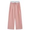 2025 Summer Women's Blue & White Check Fake Two-Piece Wide-Leg Casual Pants
