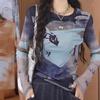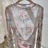 Women's 2025 Retro Print Mesh Long Sleeve T-Shirt – Stylish, Versatile Inner Layer Fashion Top