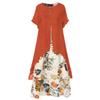 New Cotton and Linen Printed Round Neck Fake Two Short Sleeved Dress Skirt