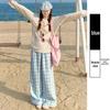 Women's Blue Plaid High-Waisted Loose-Fit Yamamoto Pants - Petite, Casual Wide-Leg, Spring/Autumn 2025 Collection.