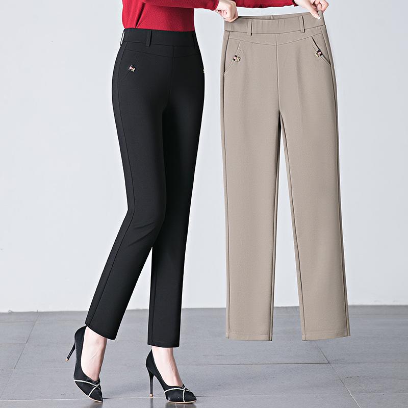 Experience comfort and style with these Women's Cotton-Blend Stretch Slimming Pants, designed for plus-size women. Crafted from a soft and breathable cotton blend, these pants offer a cotton feel that ensures all-day comfort. With a flattering high waistline and a straight-leg fit, they are perfect for both spring and autumn wear. The casual style is complemented by practical pockets for a touch of functionality. These pants are an ideal choice for any casual occasion, providing both a slimming look and unmatched versatility.