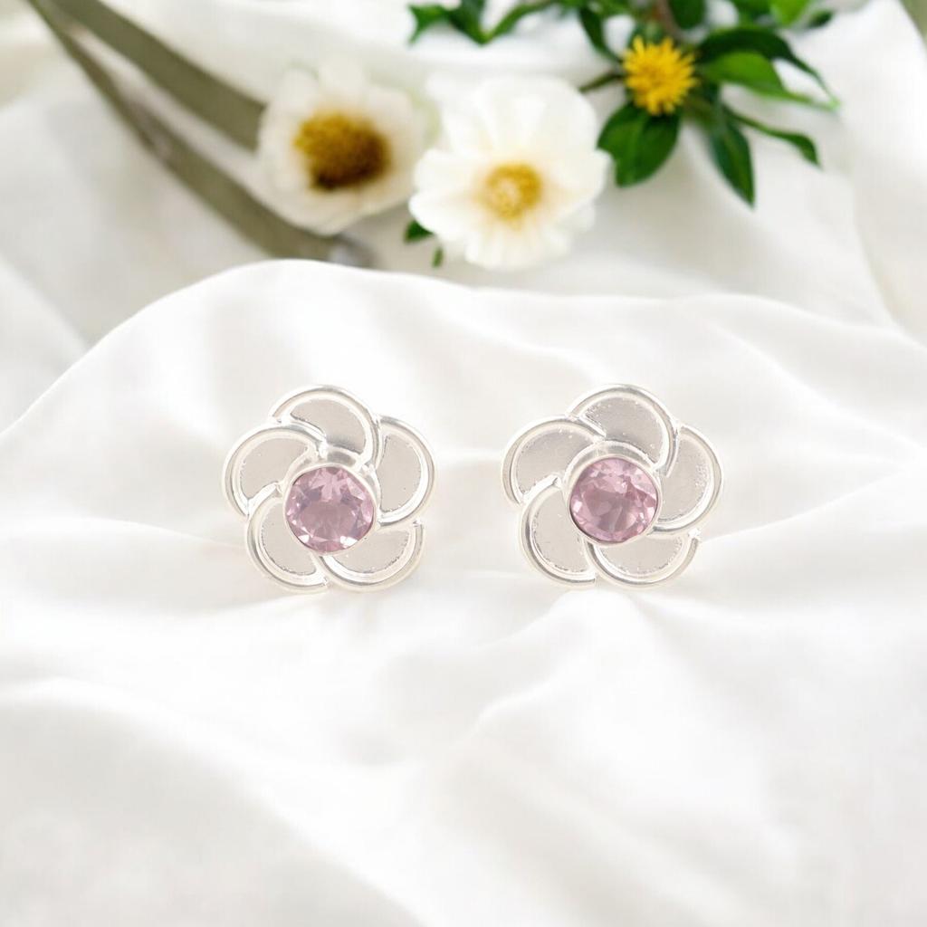 925 Stamped Silver Genuine Morganite Gemstone Flower Handmade Stud Earrings 0.5" EE-157-3