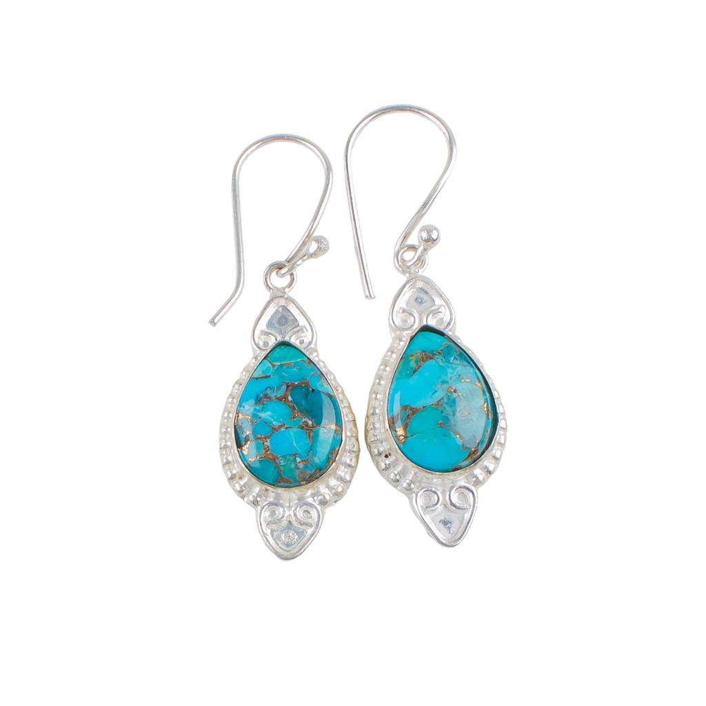 Blue Copper Turquoise Gemstone 925 Solid Silver Jewelry Handmade Earrings 1.80" EE-42-33