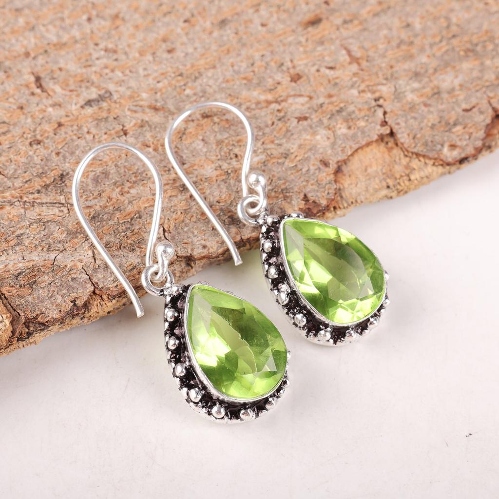 Natural Peridot Gemstone 925 Sterling Silver Handcrafted Earrings 1.41" For Gift EE-97-3