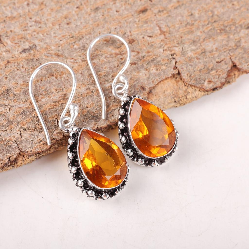 Natural Citrine Gemstone 925 Sterling Silver Handmade Women's Earrings1.41" Gift EE-97-1