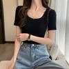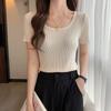 Fashion Ice Silk Short Sleeved Knitted Women's T-shirt Spring Summer New Slim Fit Thin Pullover Bottomed Sweater Women's Short Top Women's Clothing
