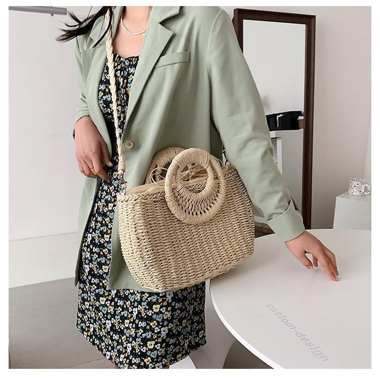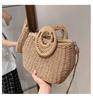2025 New Round Bucket Straw Bag Diagonal Span Beach Bag Handbag Vegetable Basket Woven Bag Fashionable Pastoral Women's Bag