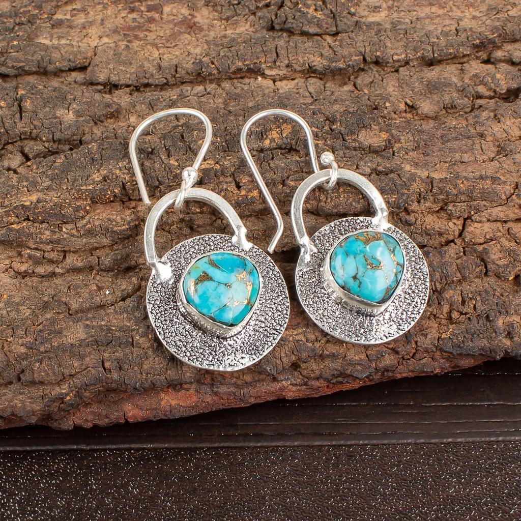 Natural Blue Copper Turquois Gemstone 925 Sterling Silver Jewelry Earrings 1.30" EE-63-34