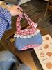 Korean Artistic Retro Plaid Handbag with Lace Trim In Red & Blue