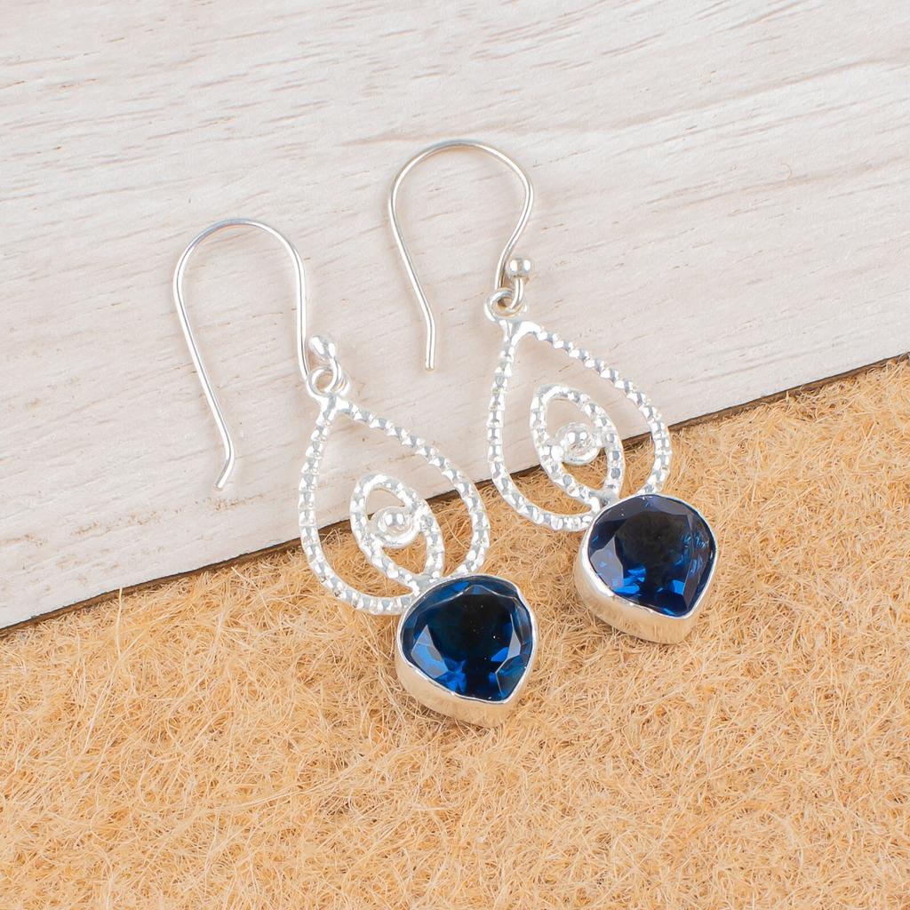 London Blue Topaz Gemstone 925 Sterling Silver Jewelry Drop/Dangle Earrings2.00" EE-32-7