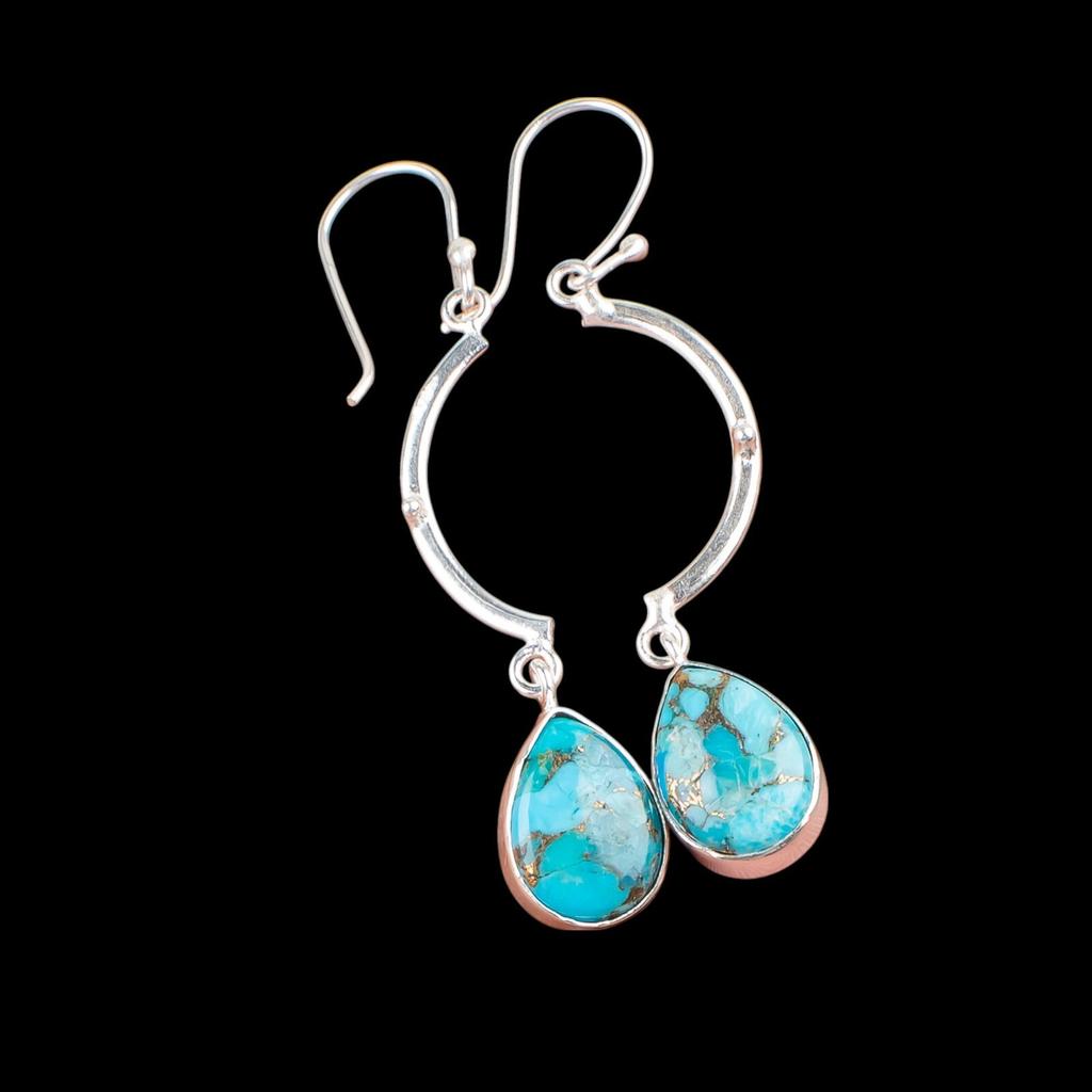 Rare Blue Copper Turquoise Gemstone 925 Sterling Silver Jewelry Earrings 2.60" EE-43-33