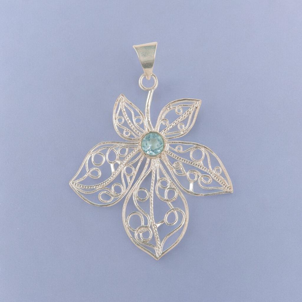 Sky Blue Topaz Gemstone 925 Sterling Silver Jewelry Handmade Blue Pendant 2.29" CP-19-9