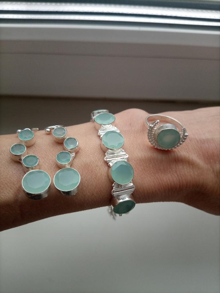 Rare Aqua Chalcedony Gemstone 925 Sterling Silver Handmade Statement Bracelet 9" RB-7-13