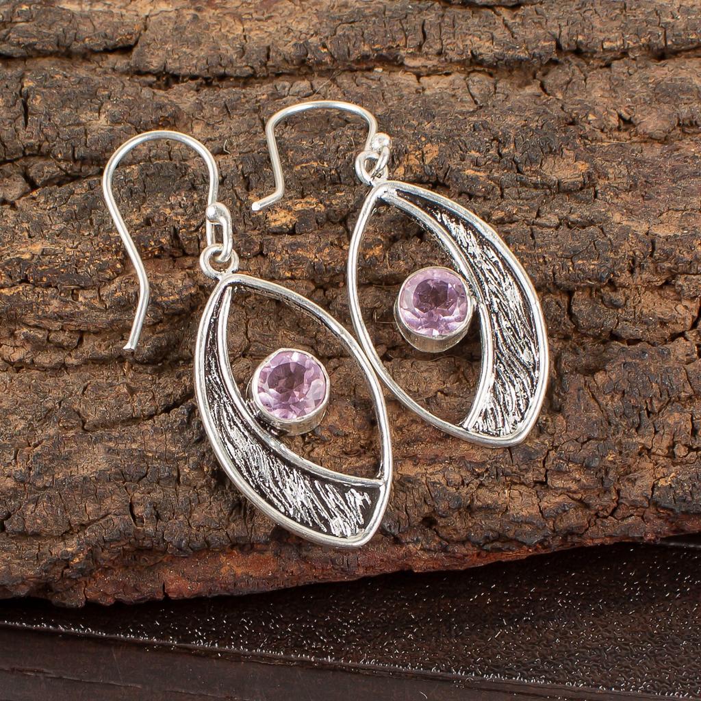 Morganite Gemstone 925 Sterling Silver Jewelry Handcrafted Dangle Earrings 1.60" EE-61-12