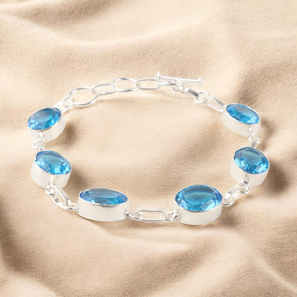 Swiss Blue Topaz Gemstone 925 Sterling Silver Jewelry Handmade Boho Bracelet 9" RB-5-11