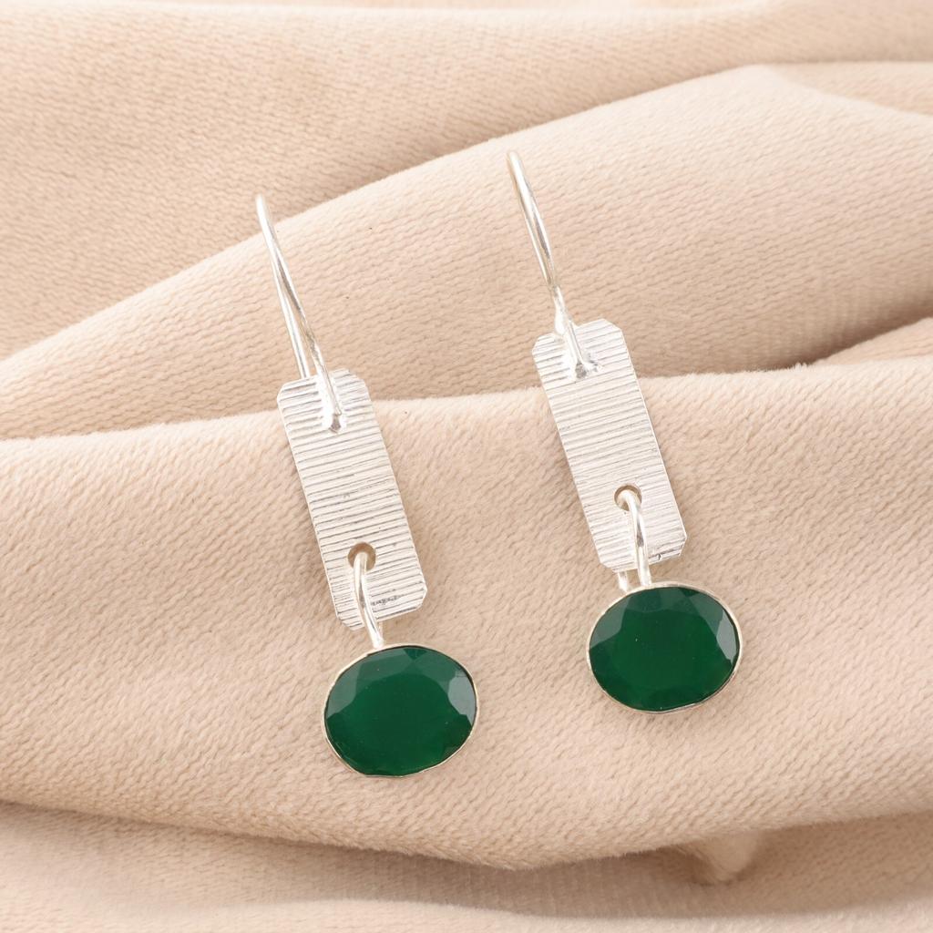 Green Onyx Gemstone 925 Solid Silver Jewelry Handmade Earrings 1.9" Gift For Her EE-168-18