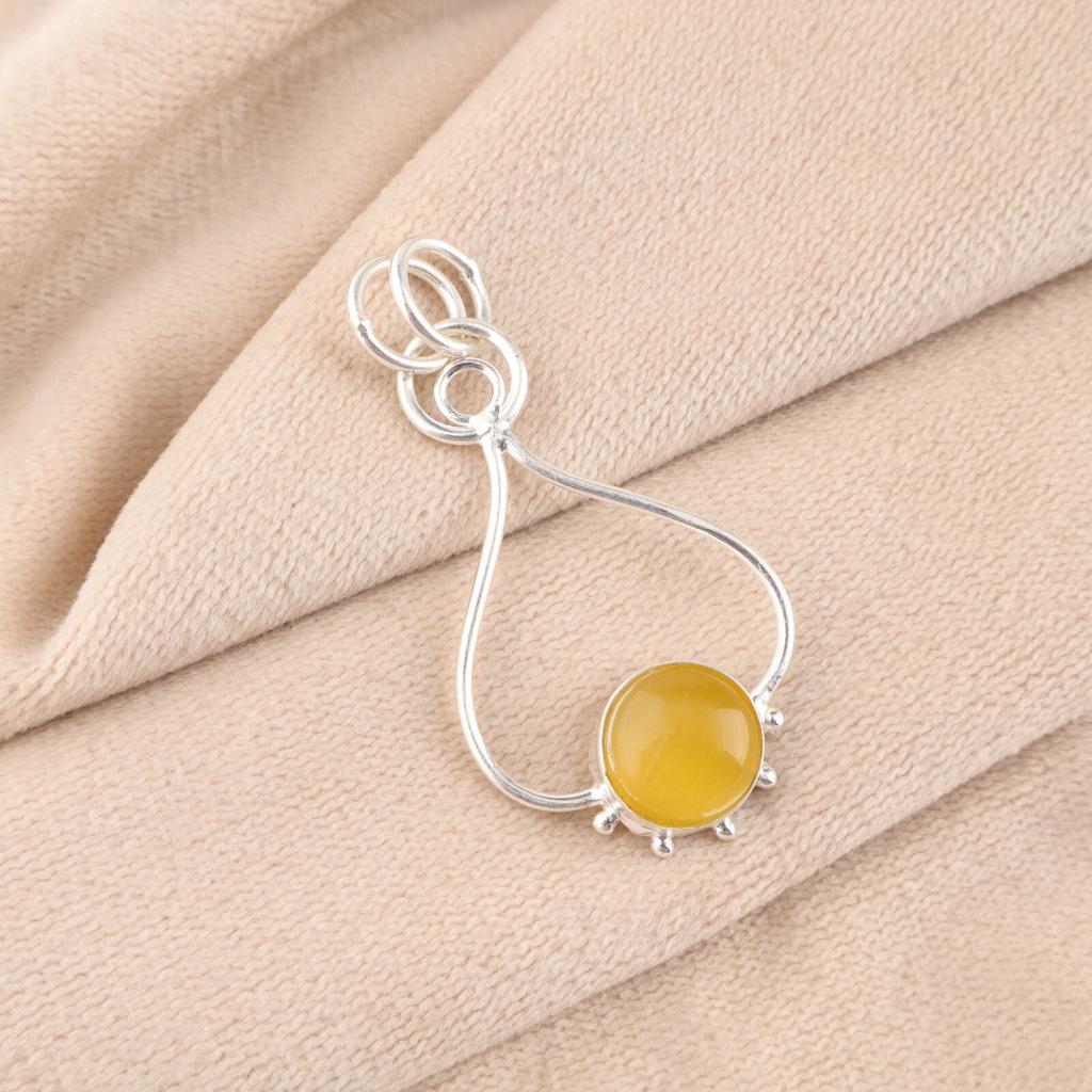 Natural Yellow Cat's Eye Gemstone 925 Solid Silver Jewelry Handcrafted Pendant PP-40-49