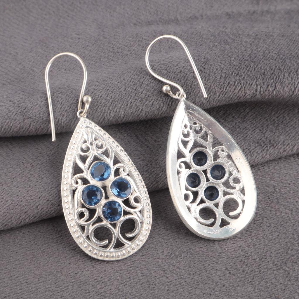London Blue Topaz Gemstone 925 Sterling Silver Handmade Jewelry Earrings 2.25" CE-17-3