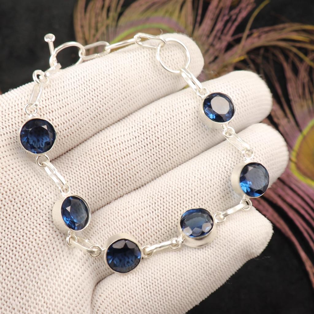 London Blue Topaz Gemstone 925 Sterling Silver Jewelry Handmade Girls Bracelet RB-14-9